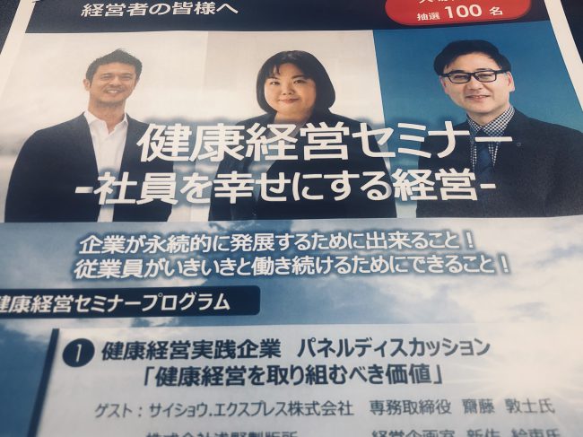 僭越ながら1月22日に東京商工会議所様・アクサ生命保険株式会社様合同主催によります健康経営セミナーにゲストとしてお声がけ頂きました。 社員を大切にする経営を皆さんと一緒に学んでいきたいと思います。 https://www…