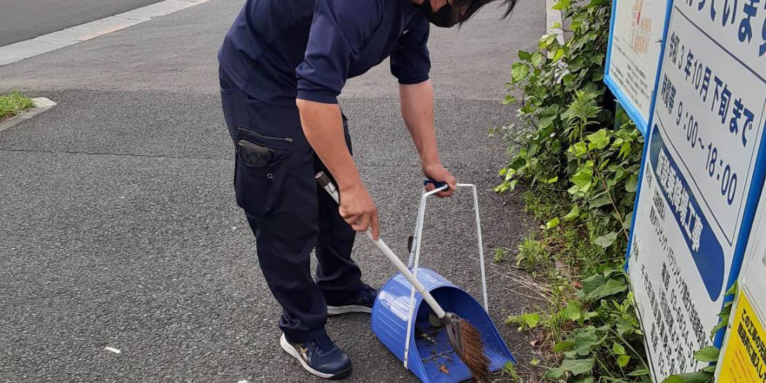 清掃活動でお客様の会社周辺が綺麗になるだけではなく社員教育の一環となります。