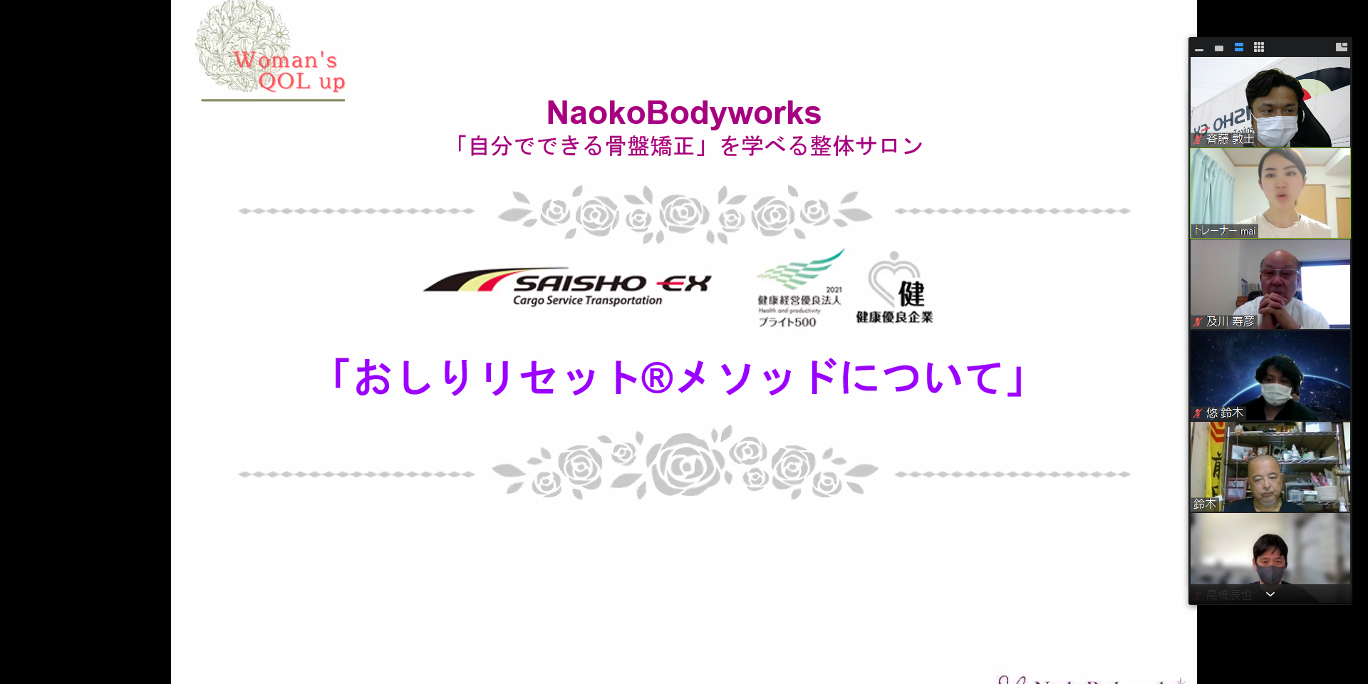トラックを活用した骨盤矯正トレーニングをこれから半年間、社内でオンライントレーニグを行います。