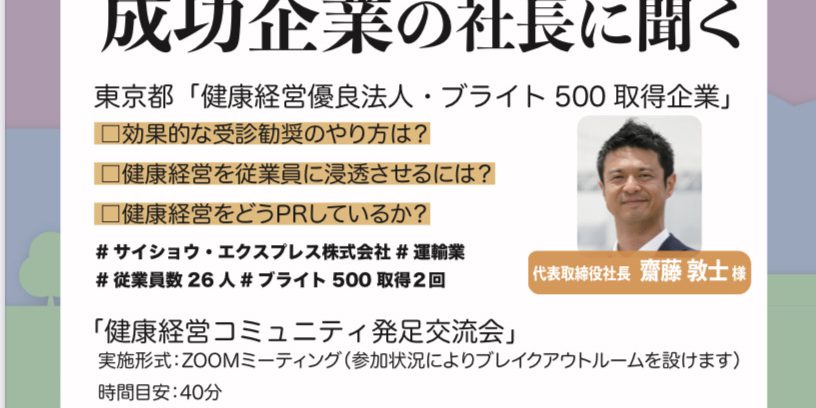 6月22日(火)15:00よりIKIGAIWORKS様主催の ~健康経営「利活用」セミナー・交流会~に弊社代表の齋藤が登壇いたします。
