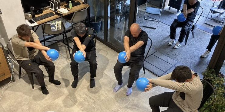 「空気がパンパンのボールの方がキツい!」とのことで追加で空気を入れる社員もいました!