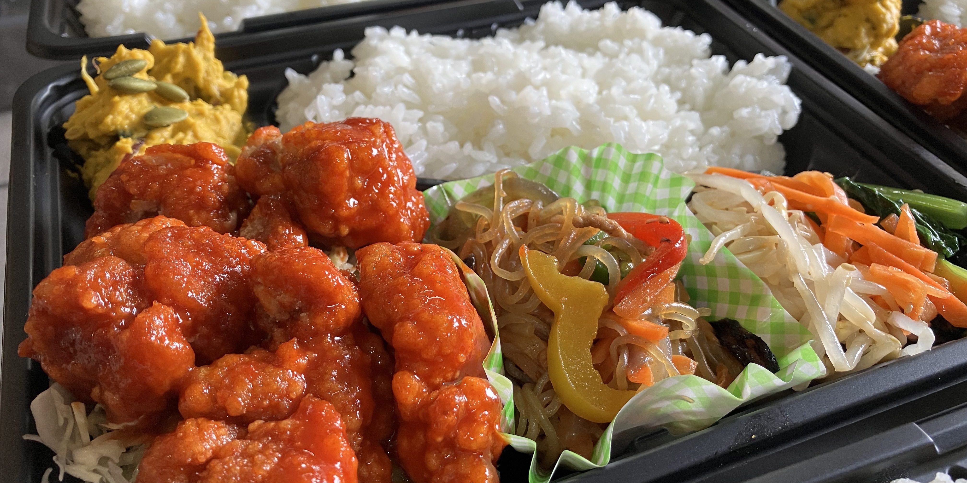 唐揚げは7kg揚げ、ヤンニョムチキンのタレは辛めのコチュジャンを使用。ピリ辛に仕上げました。