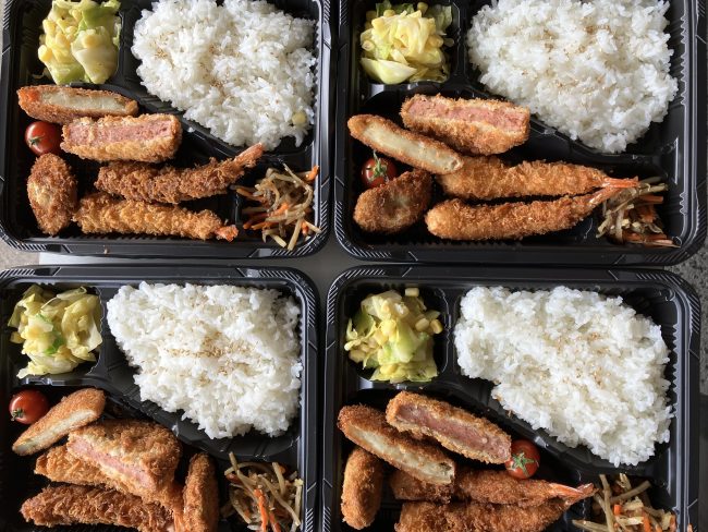 今月のメニューは ミックスフライ弁当! キャベツの洋風和え物&きんぴらごぼうを添えて、バランスもばっちり! 気になるフライのラインナップは… ・エビフライ2本 or ささみフライ(選べる!) ・のりしおチキンフライ ・ハ…